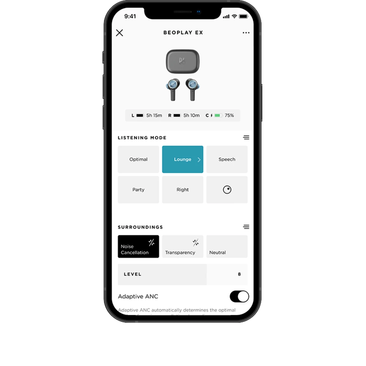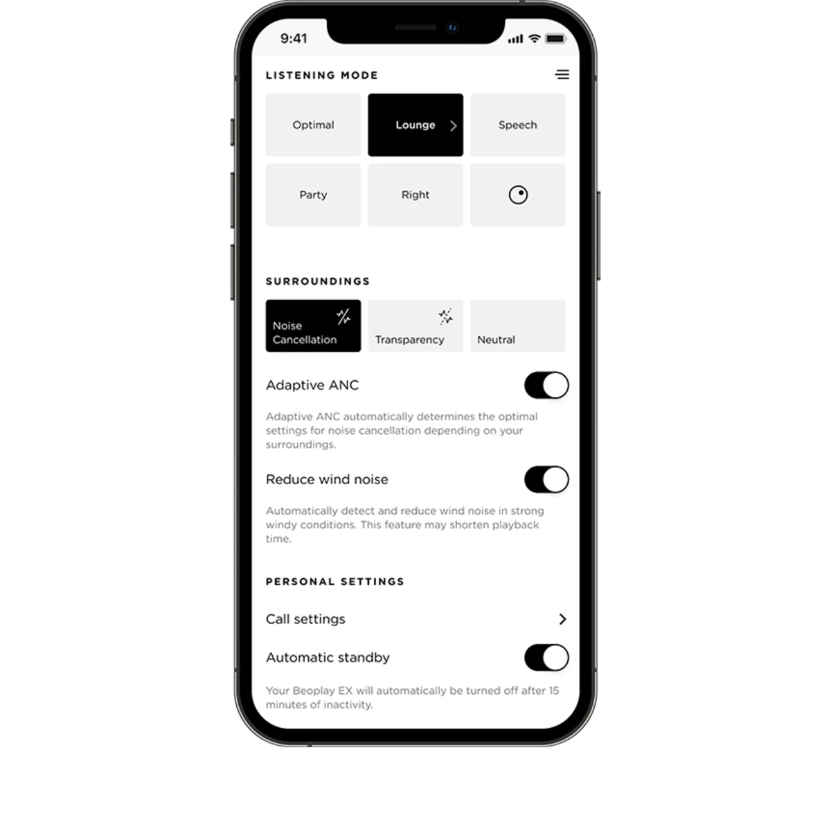More bass, more warmth, more you. Personalise your listening experience with the B&O app. Beosonic equaliser and noise cancellation adjusters give you complete control over how you listen, with just a tap.