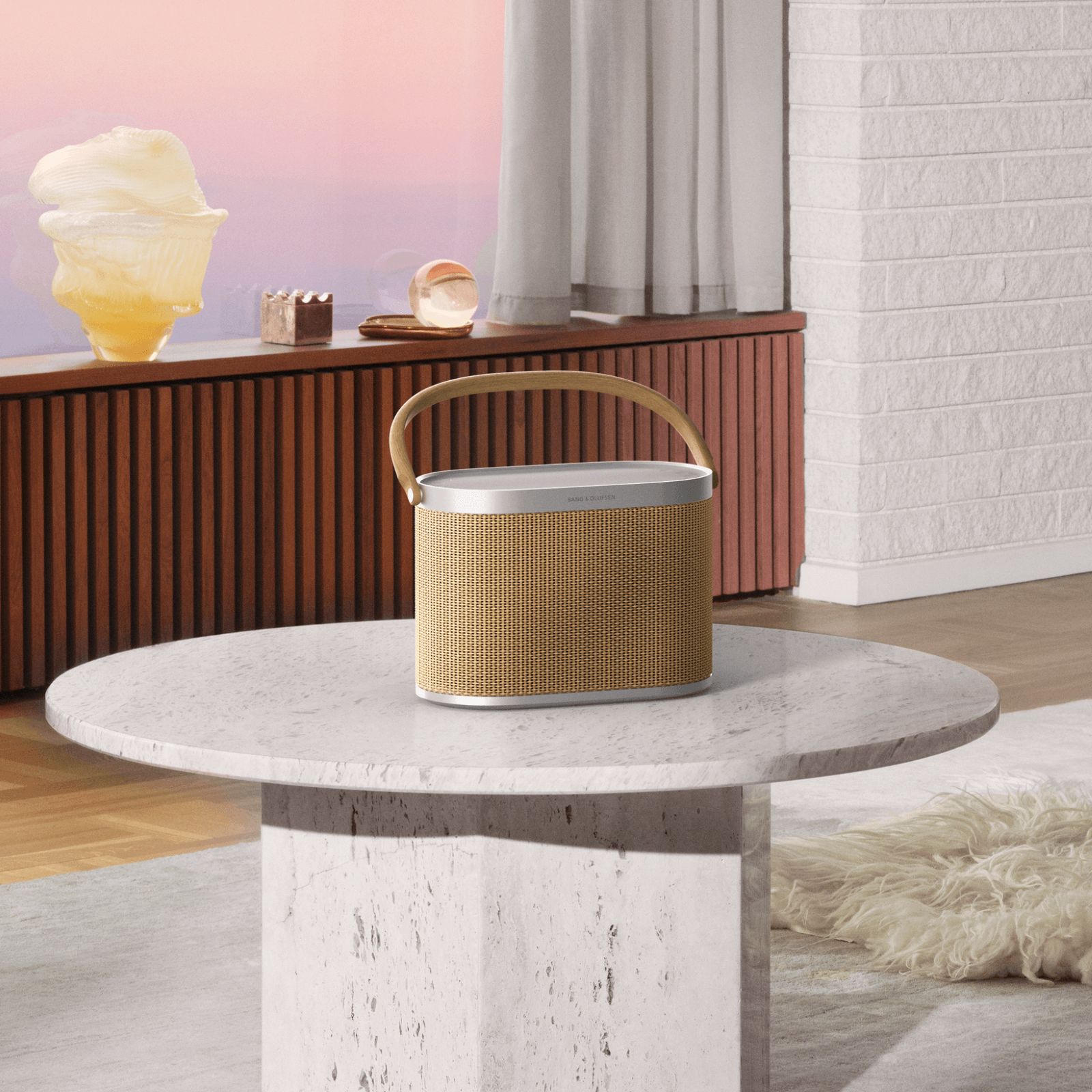 Huge sound anywhere – in the home or outdoors. Beosound A5 is a Wi-Fi and Bluetooth speaker with long-lasting battery and wireless charging built in.