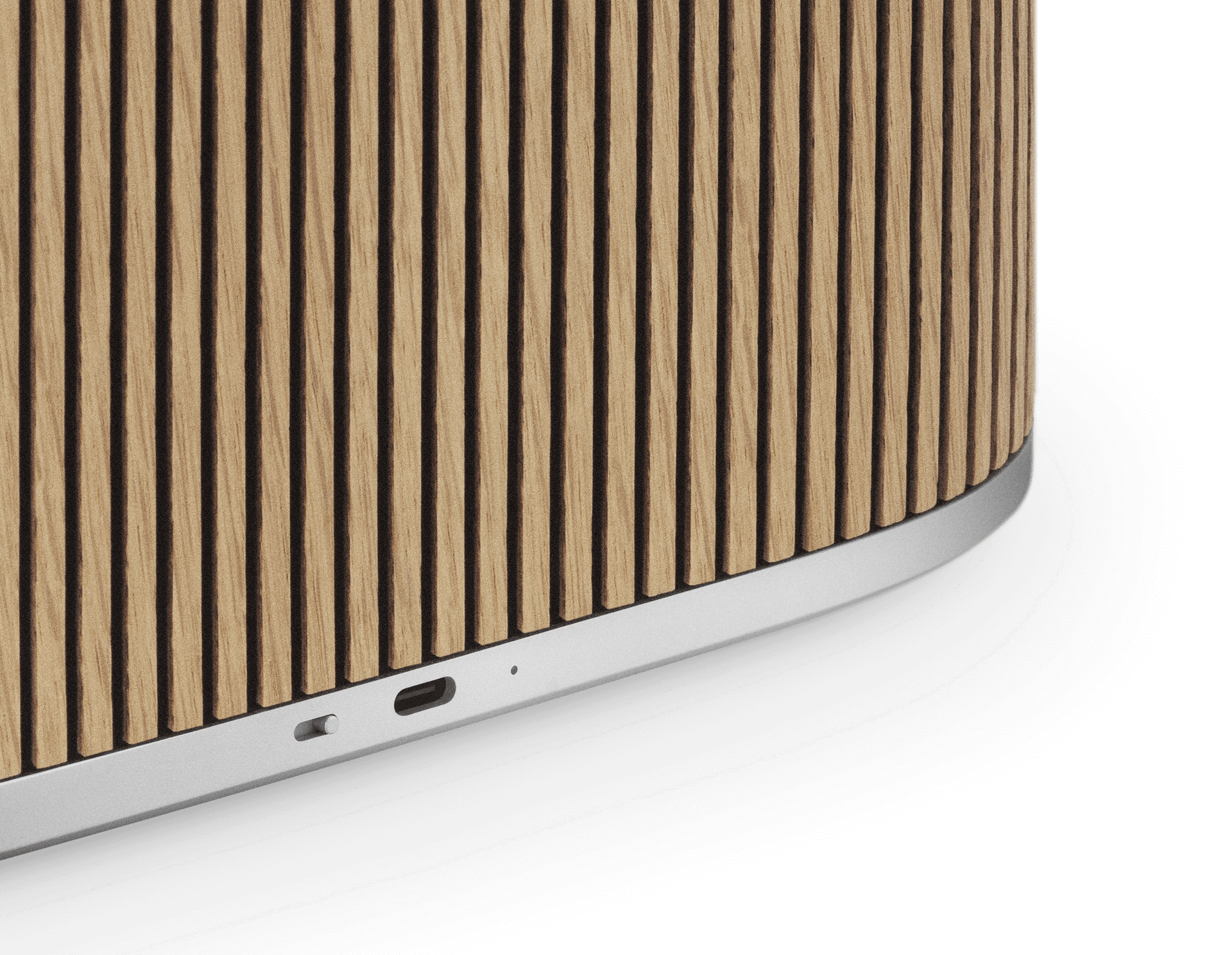 Detailed but simple. Beosound A5 epitomises the best of Scandinavian design and materials. Real oak and rich aluminium make for a tactile experience, crafted with longevity in mind. Designed in collaboration with GamFratesi Studio.