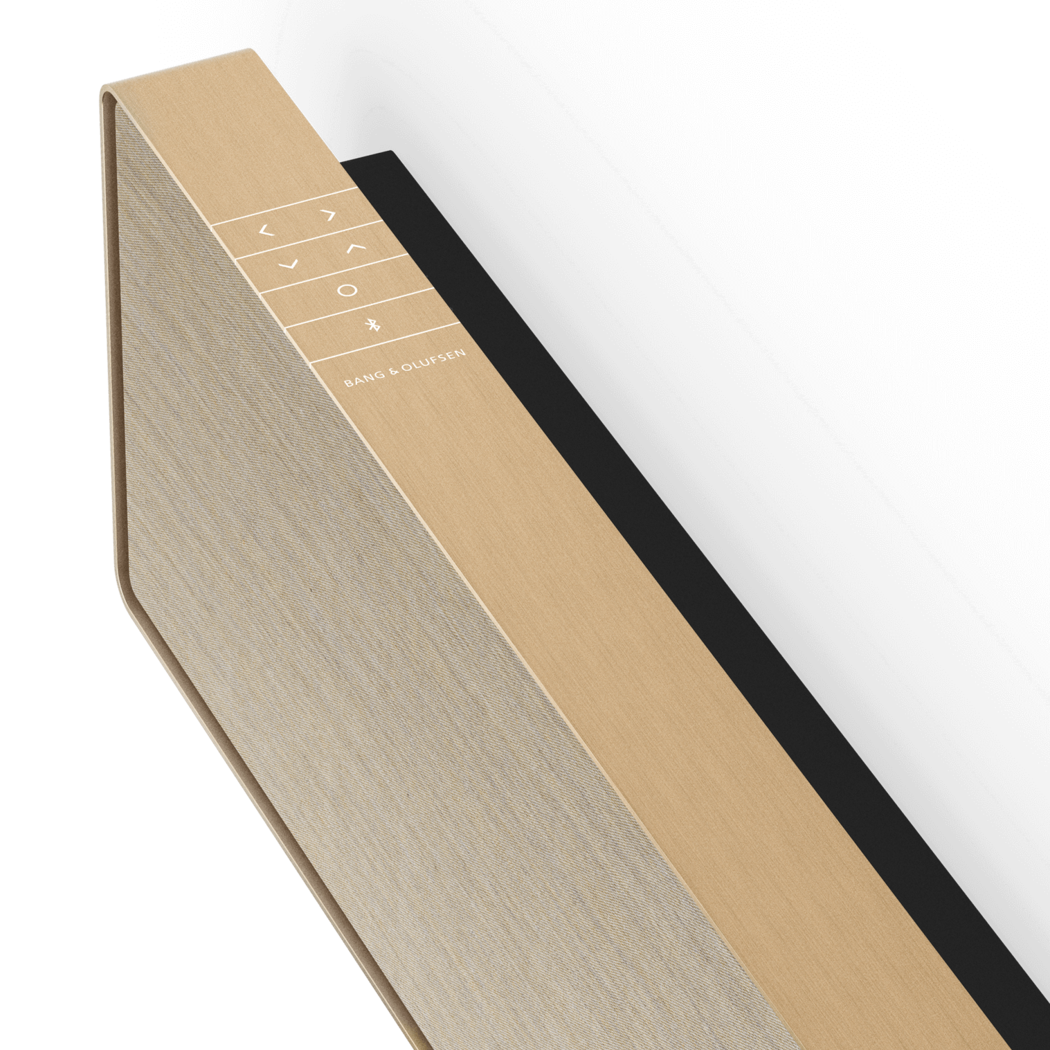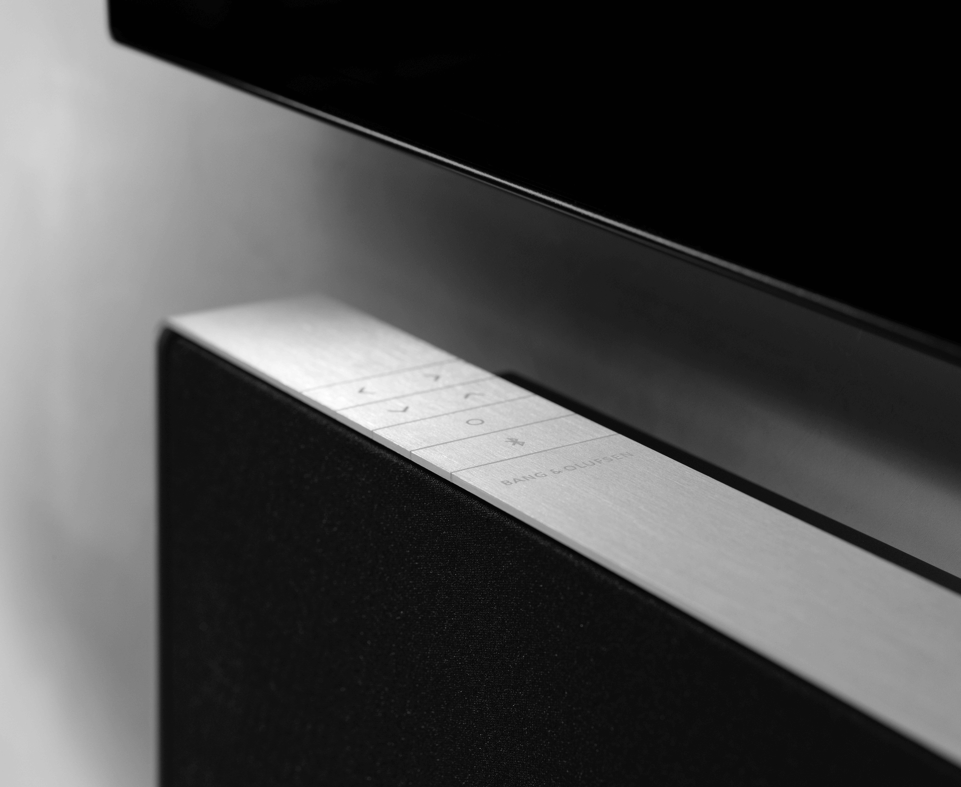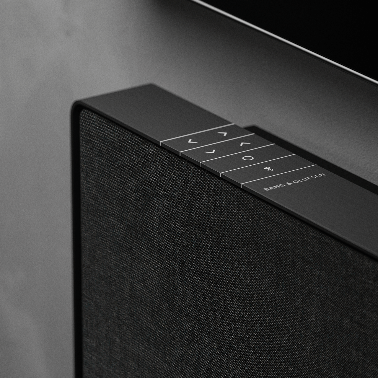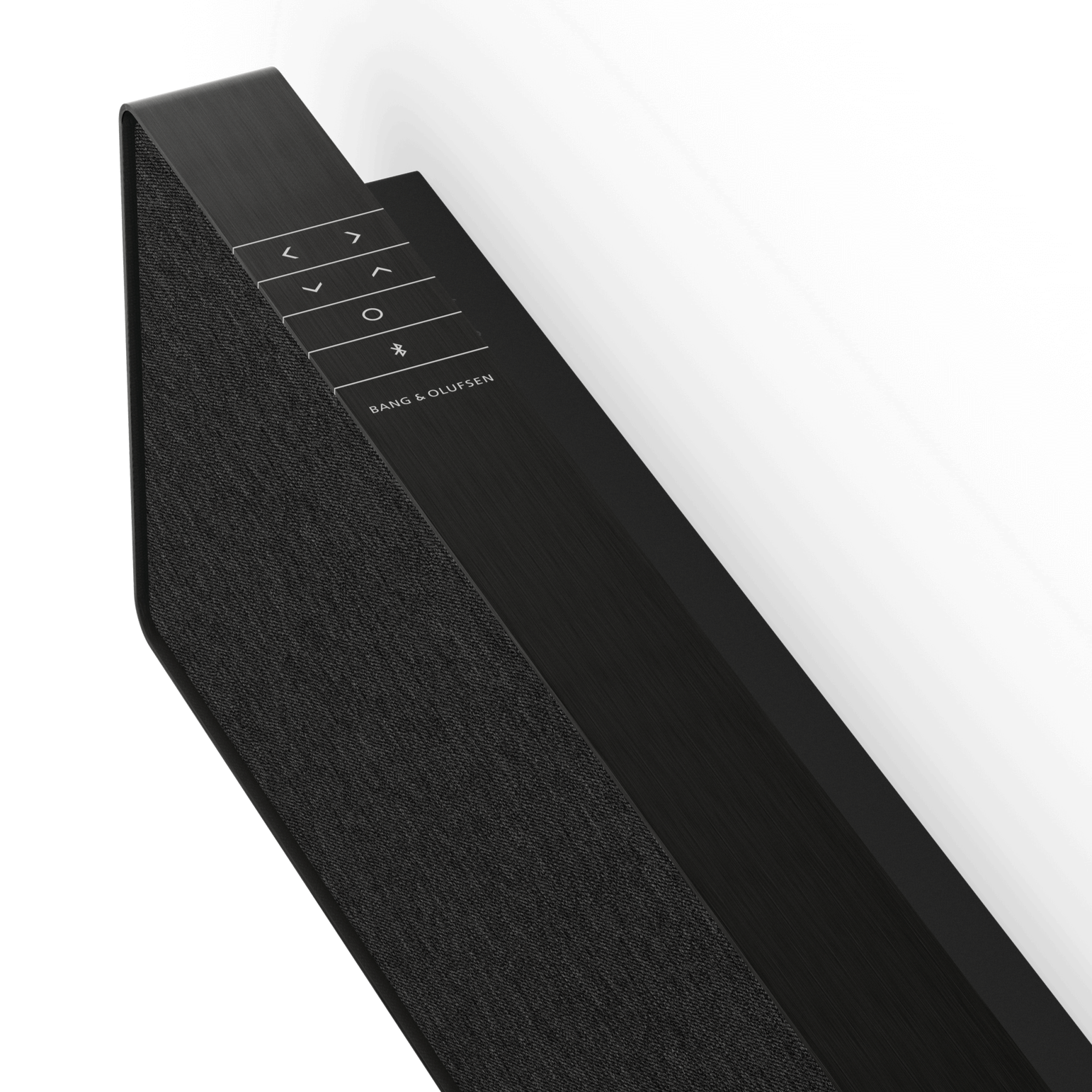 The control buttons integrate seamlessly, a visual continuation of the infinite frame. A deliberate gap between the frame and the fabric cover highlights the contrast from the aluminium to the warm fabric. Beosound Stage brings expressive minimalism to any interior – while maximising the TV experience.