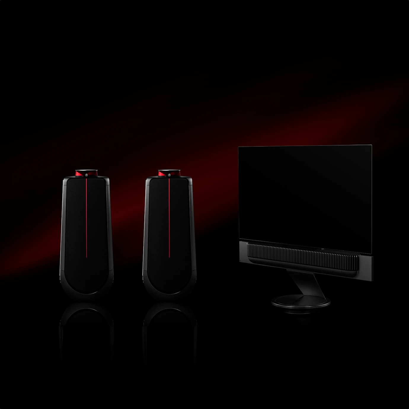 From lamellas to frame, Beosound Theatre Ferrari edition is crafted entirely from Grigio Corsa aluminium. Every detail, down to the Ferrari Prancing Horse, done with elegance. This is heartracing surround sound, sculpted for style.