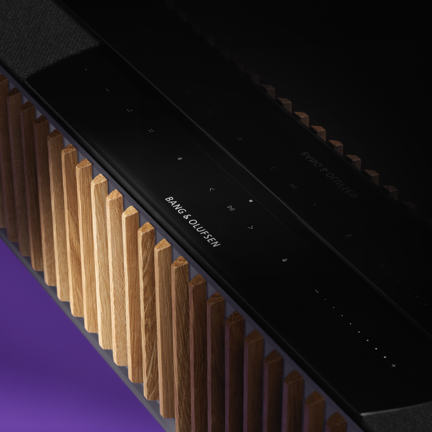 Step close to Beosound Theatre and the minimal interface springs into life. Use the glass touch panel to explore your music, choose your presets or pair with a Bluetooth device. All this with just a touch.