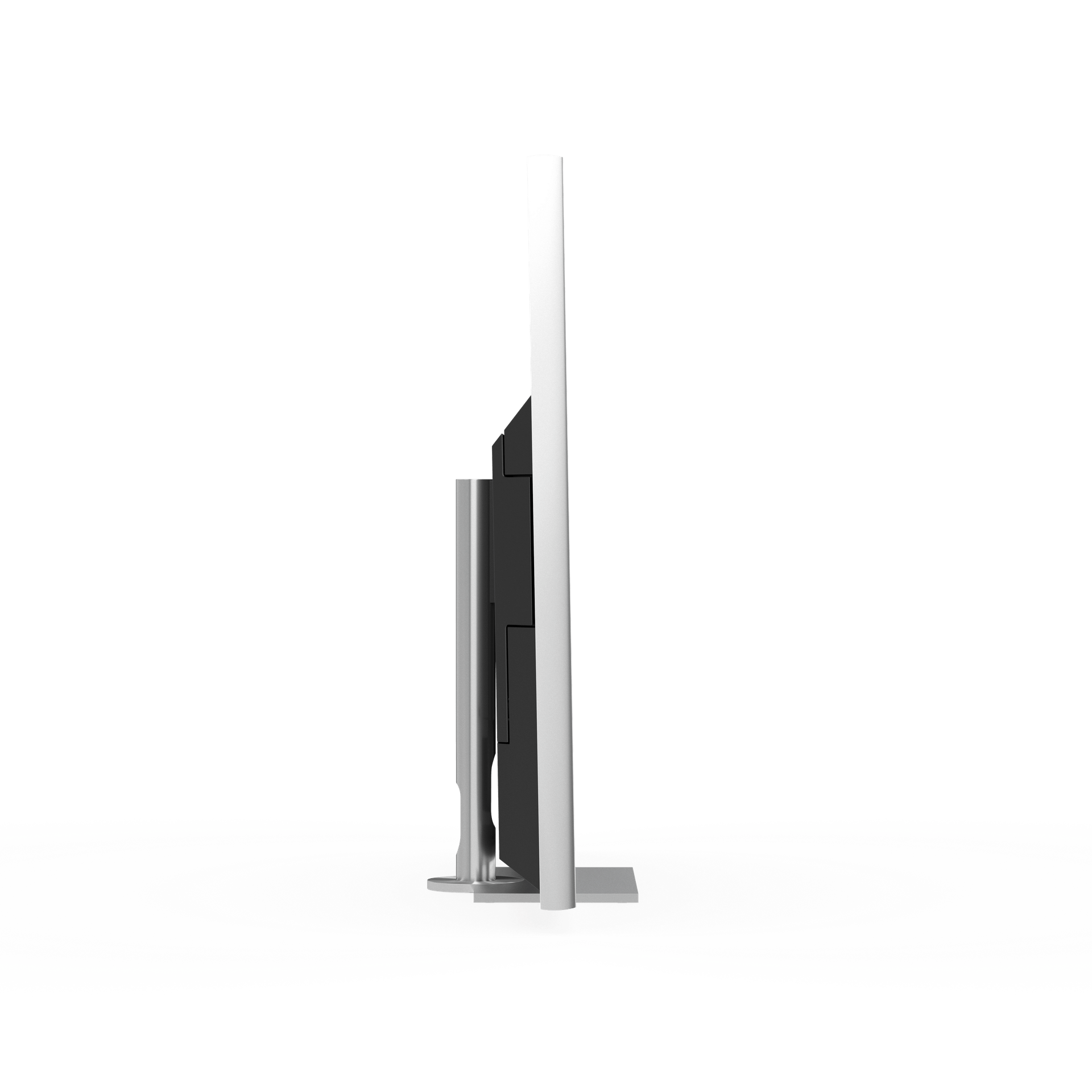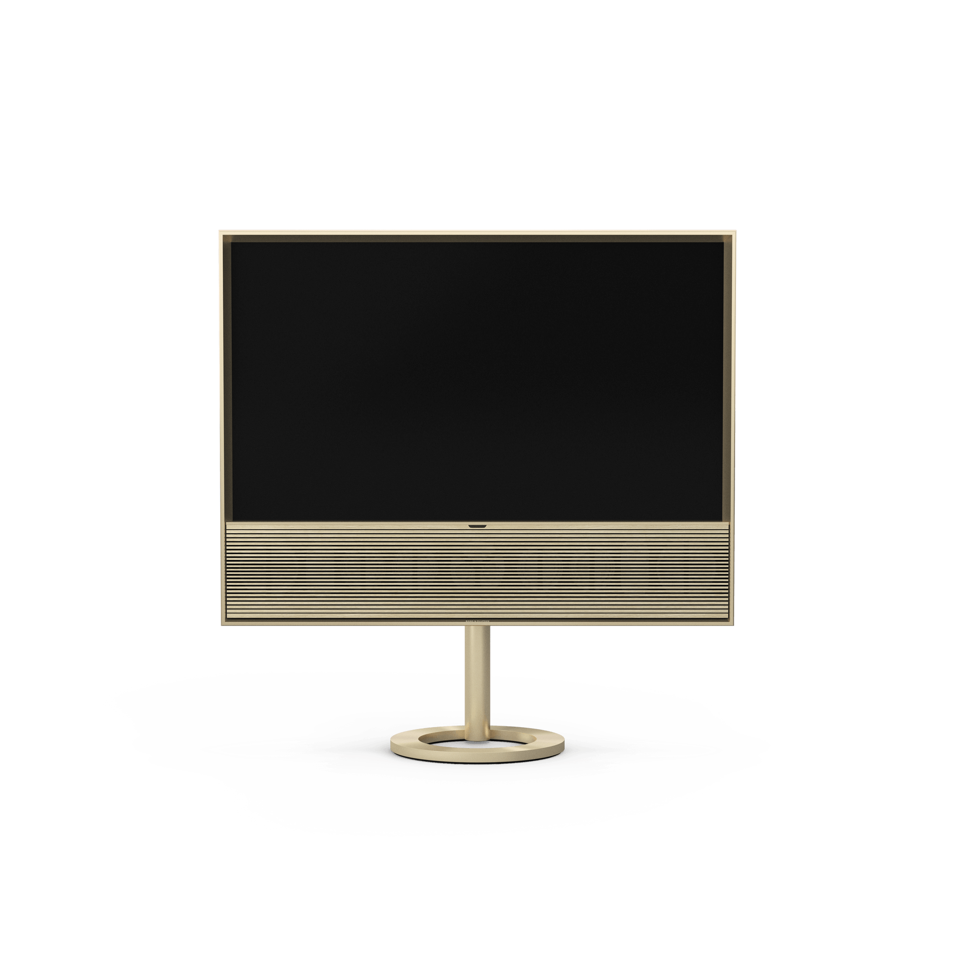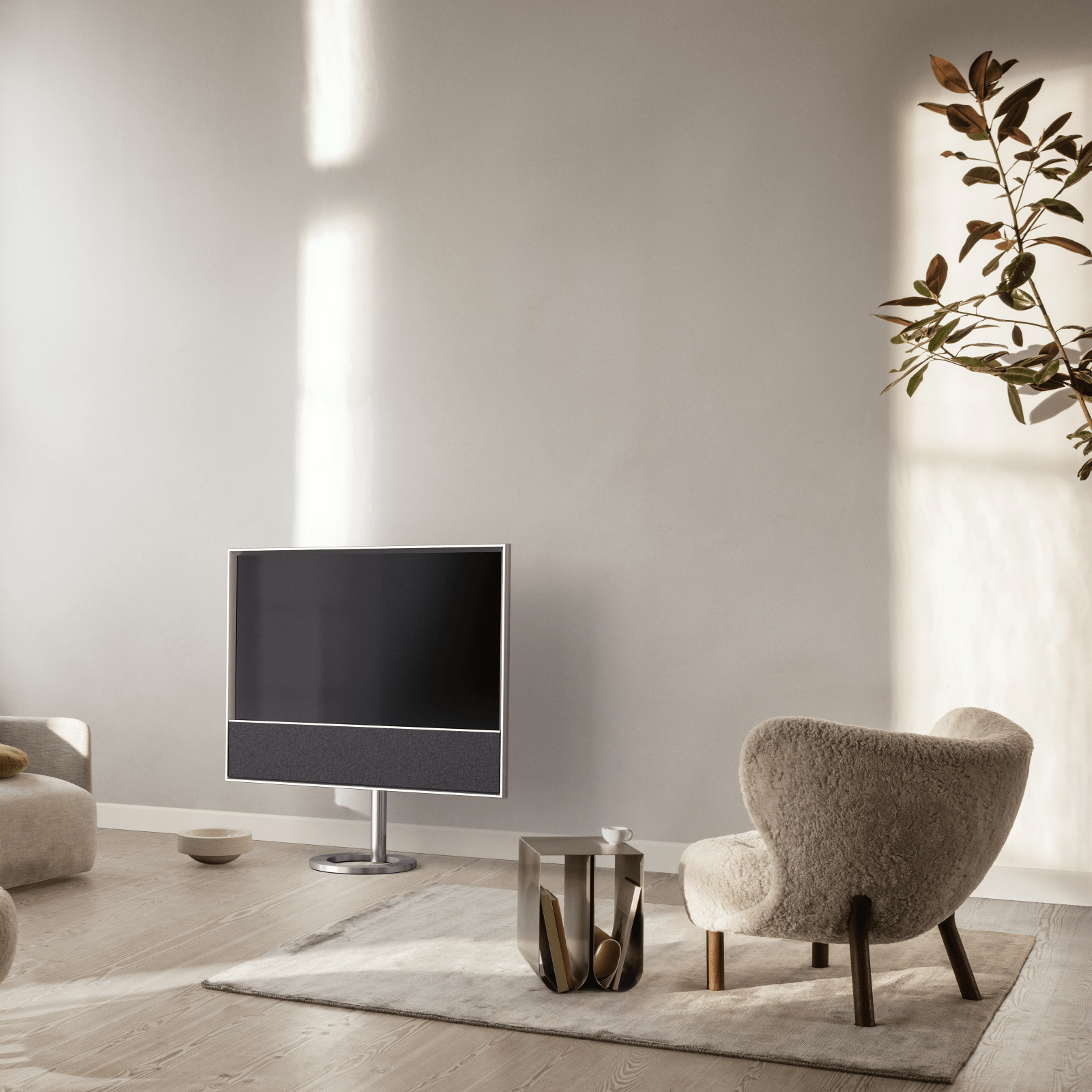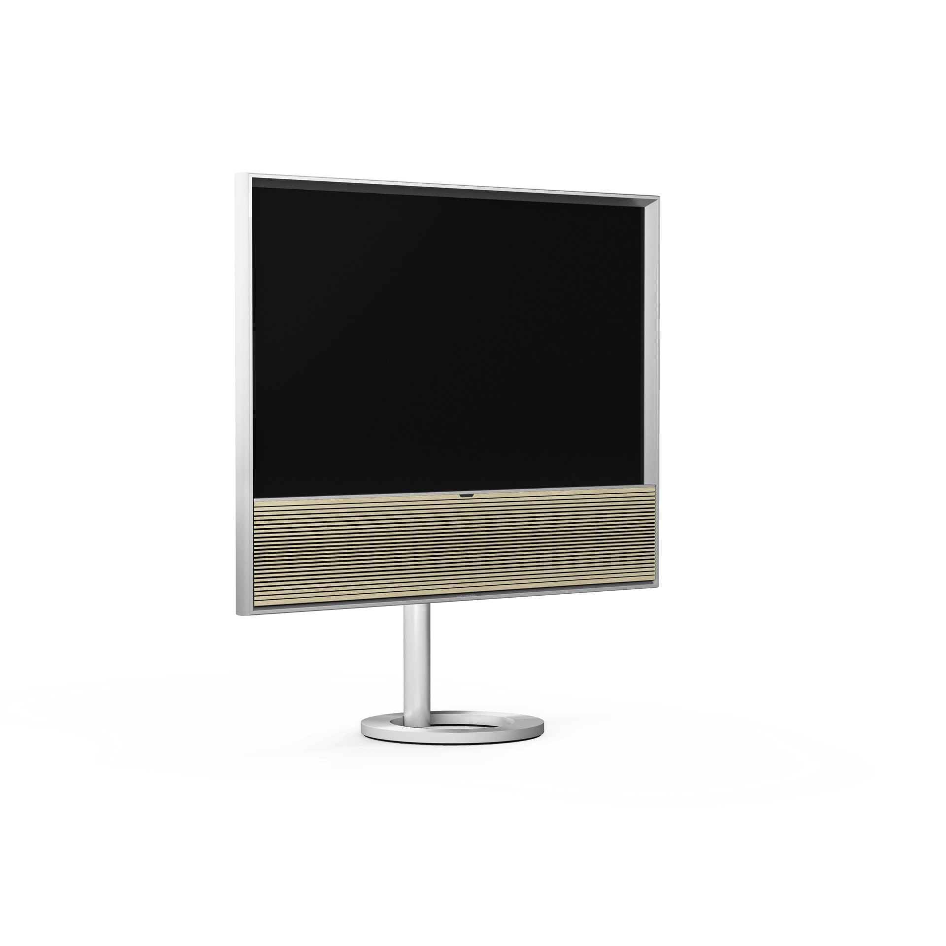 The characteristic aluminium floor stand and frame outline a unique, minimalistic design identity. It’s stripped of everything non-essential, focusing on helping you see and hear the most authentic television experience.